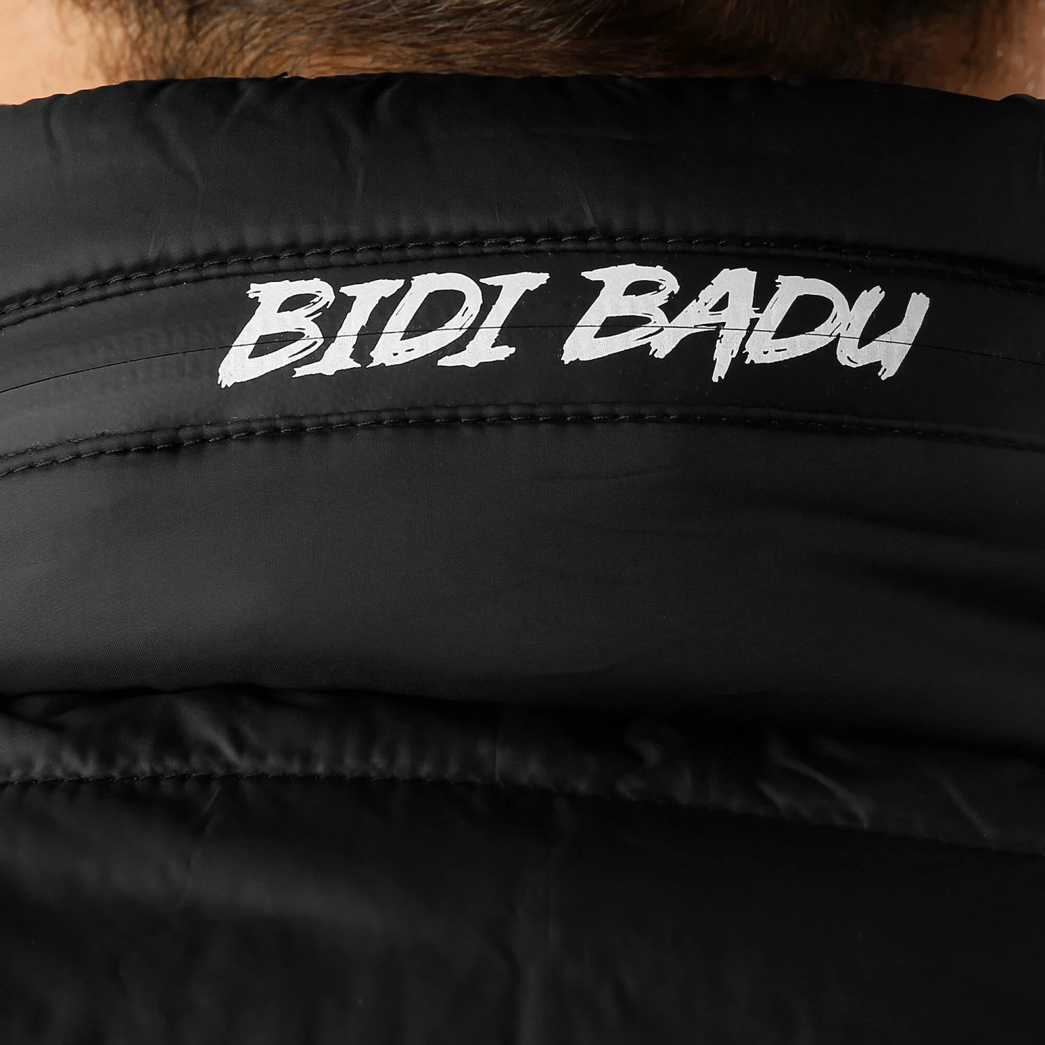 The Pandu Tech Down Jacket Men by Bidi Badu is equipped with a foldable hood and is made of water-repellent material.